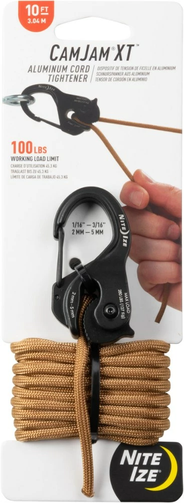 Allowing you to easily secure heavy loads, the Nite Ize CamJam XT aluminum cord tightener tightens, tensions and connects with the simple pull of your cord through the cam mechanism—no knots required.
