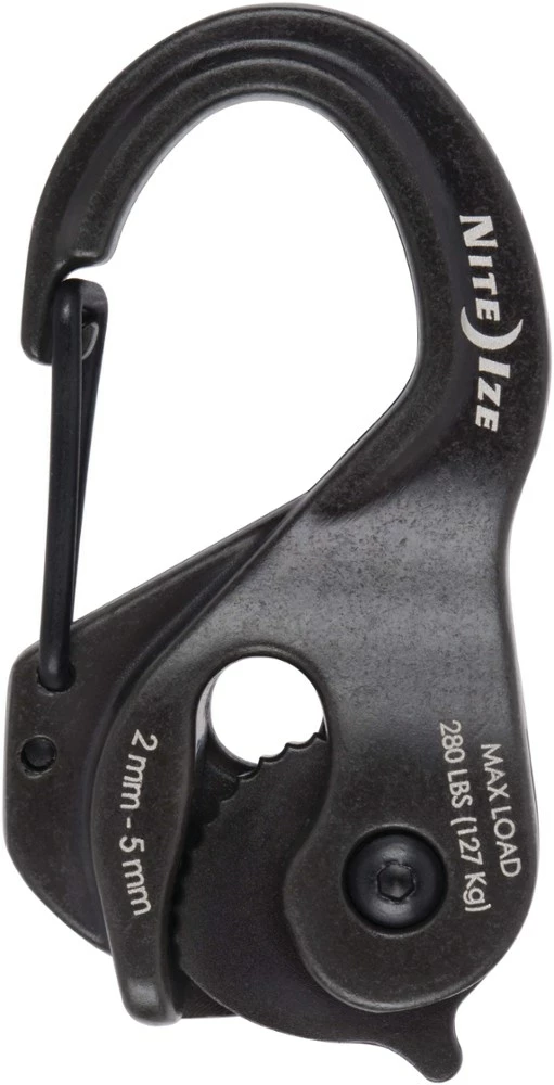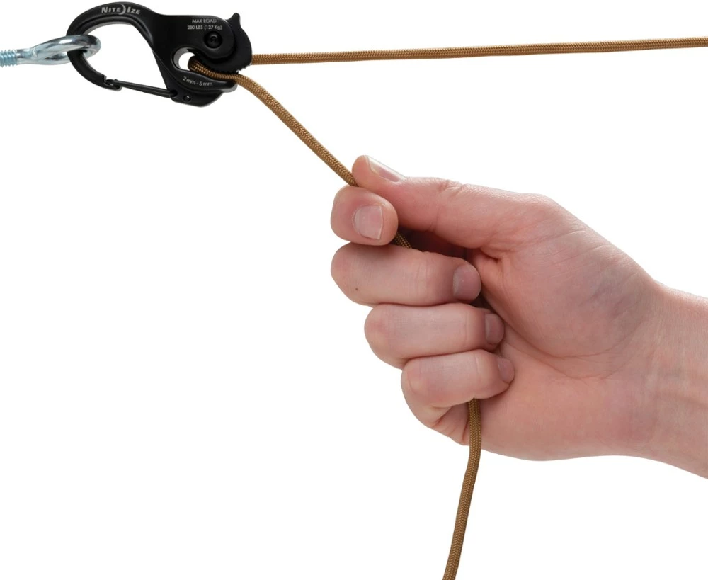 - For fixed-end systems, simply anchor the carabiner to any hook, D-ring or loop, and feed the cord or rope through the cam until you’ve reached the desired level of tension
