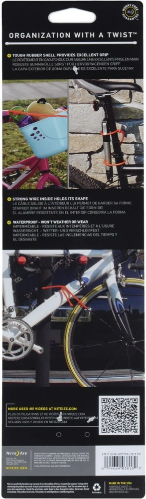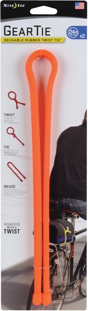 The 24 in. Nite Ize Gear Tie is made of a sturdy, colorful rubber exterior with an strong bendable wire interior. It wraps, ties and organizes cords, devices and tools with a simple twist.