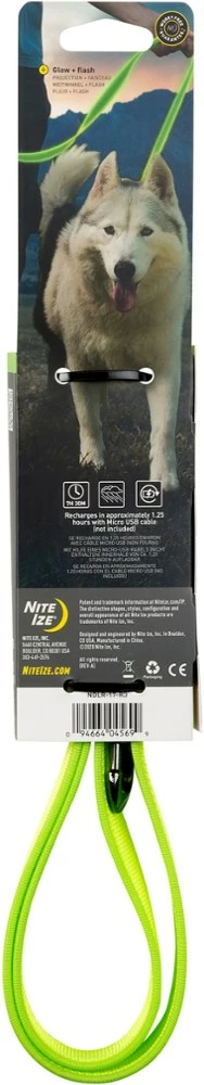 Walk into a whole new world of nighttime visibility with the Nite Ize NiteDog rechargeable LED leash. Thanks to 2 ultrabright LEDs and integrated optical fiber, it glows bright for up to 6.5 hrs.