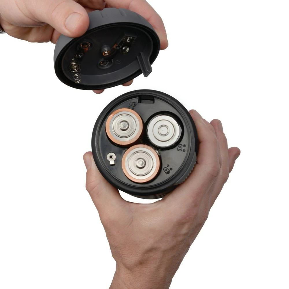 - 3 D-cell batteries provide nearly 800 hrs. of light on low setting (batteries not included)