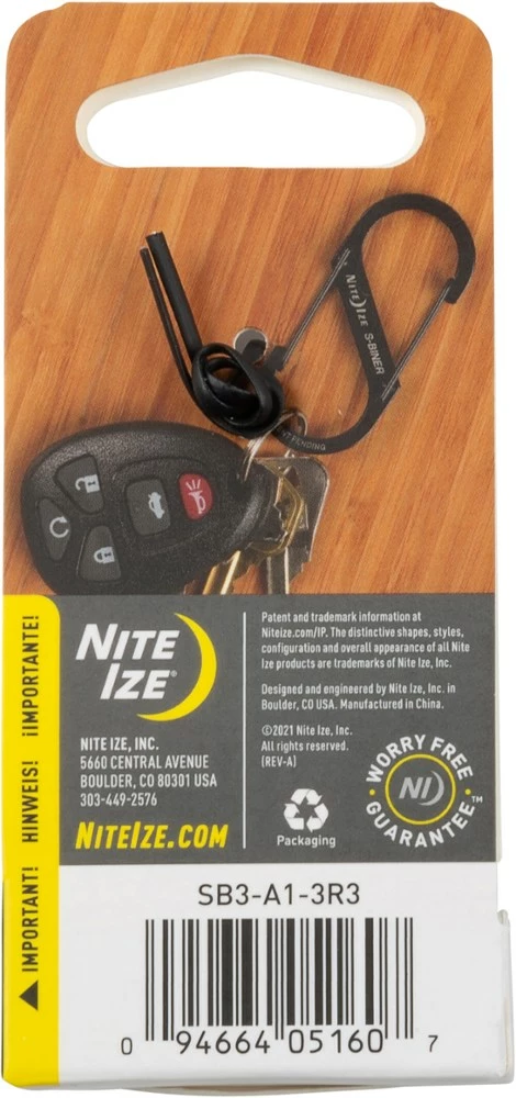 - The medium-size S-Biner #3 works great for hanging items from a backpack strap or luggage