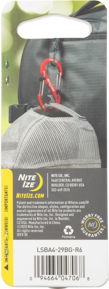 Organize, connect, carry and keep your valuables secure with the durable Nite Ize S-Biner SlideLock #4 dual carabiner. Made of lightweight aluminum, it weighs only 0.7 oz. (19g).