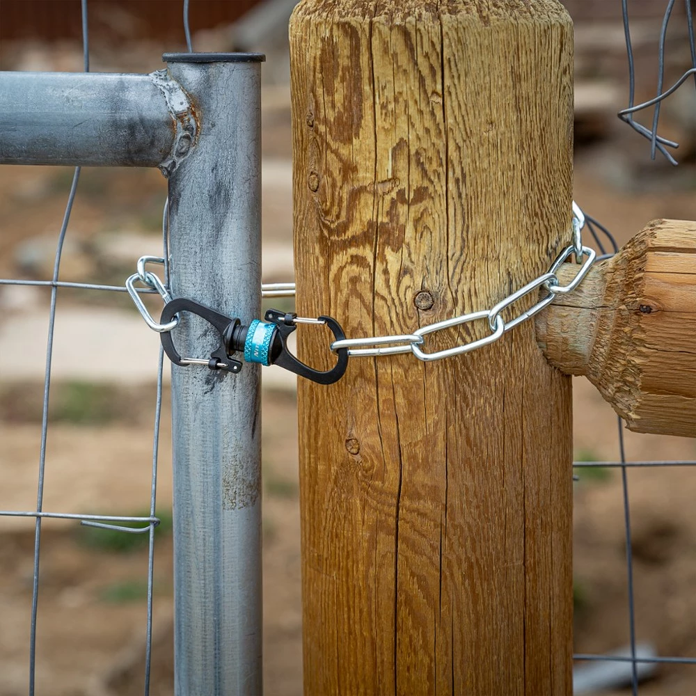 - Cast aluminum carabiners and collar with stainless-steel locking gates