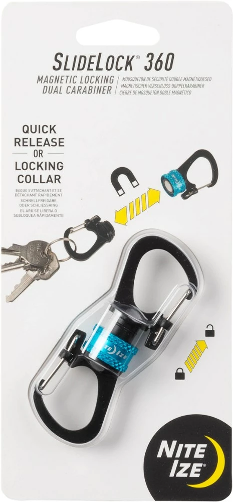 When accessibility is necessary but security can’t be compromised, the Nite Ize SlideLock 360° Magnetic Locking dual carabiner is the answer. They can be used together or independently.