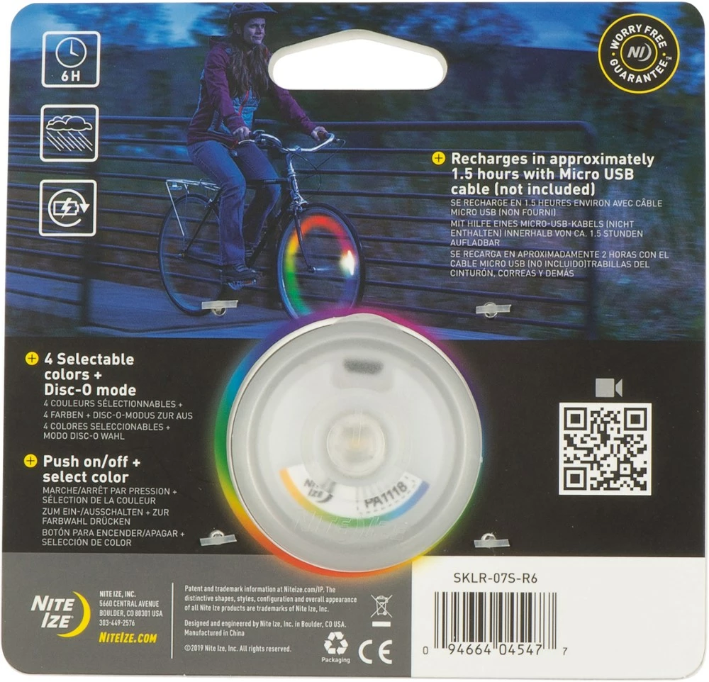Offering a fun way to add side visibility while on your bike, the Nite Ize SpokeLit rechargeable wheel light with Disc-O Select has 2 bright, efficient LEDs to illuminate your rides, rain or shine.