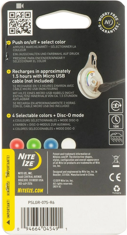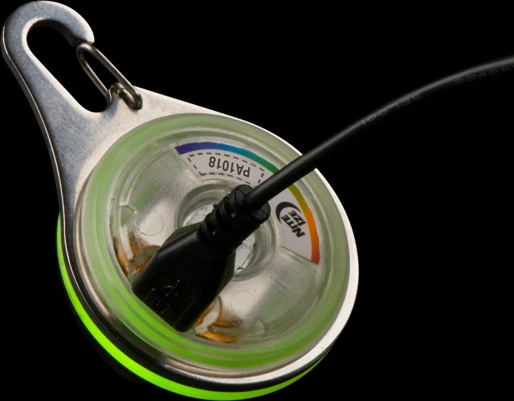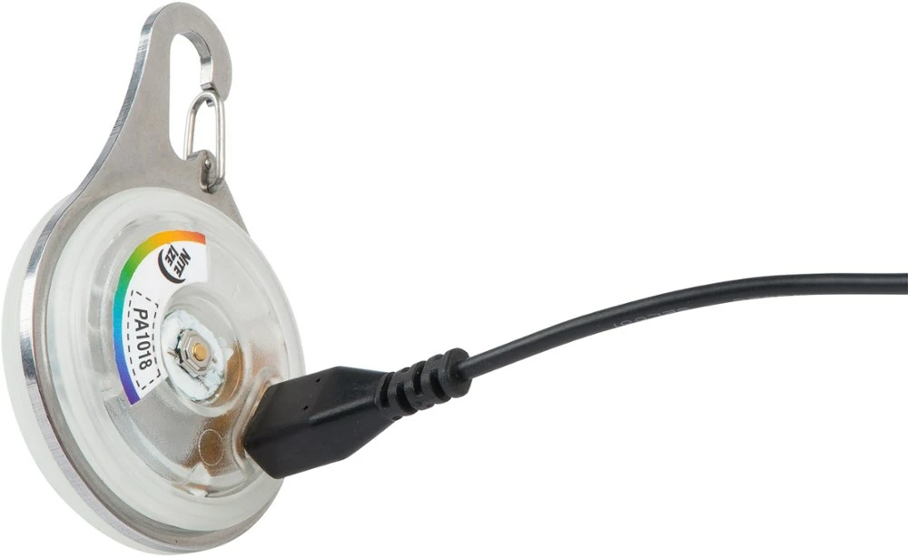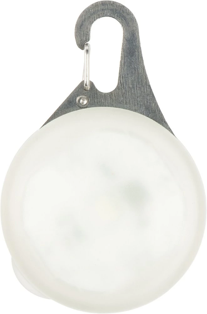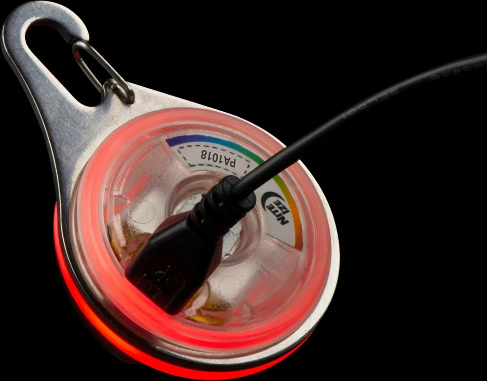 Featuring a durable, stainless-steel carabiner clip, the Nite Ize SpotLit XL Rechargeable Collar Light attaches securely to the D-ring of any collar or harness to keep your pet visible at night.