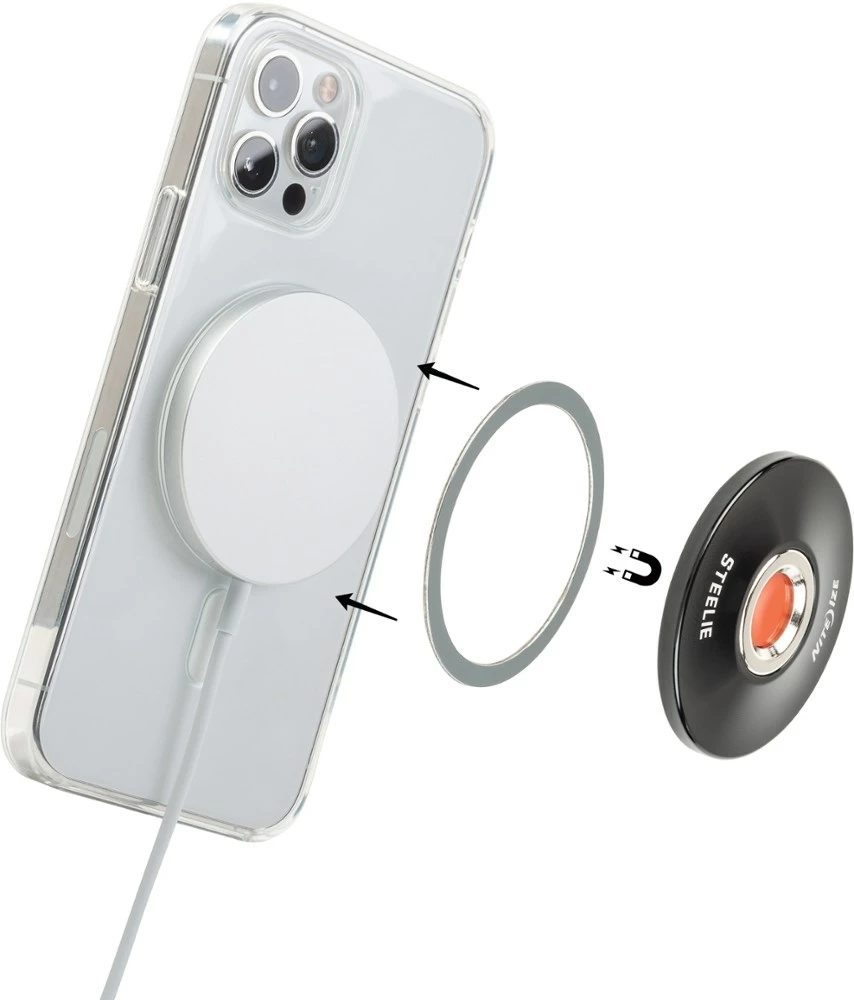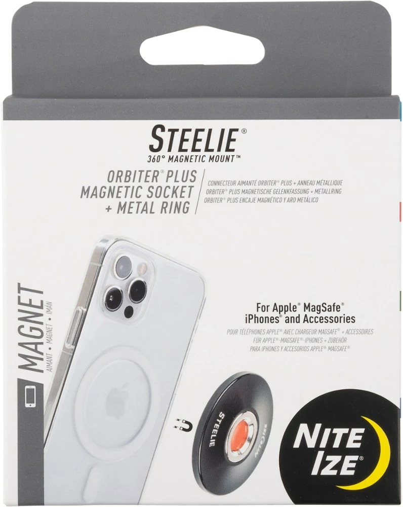 Keep your iPhone® stable with the Nite Ize Steelie Orbiter Plus Magnetic Socket and Metal Ring. It attaches to Steelie mounts and perfectly aligns with MagSafe® phones, cases and chargers.