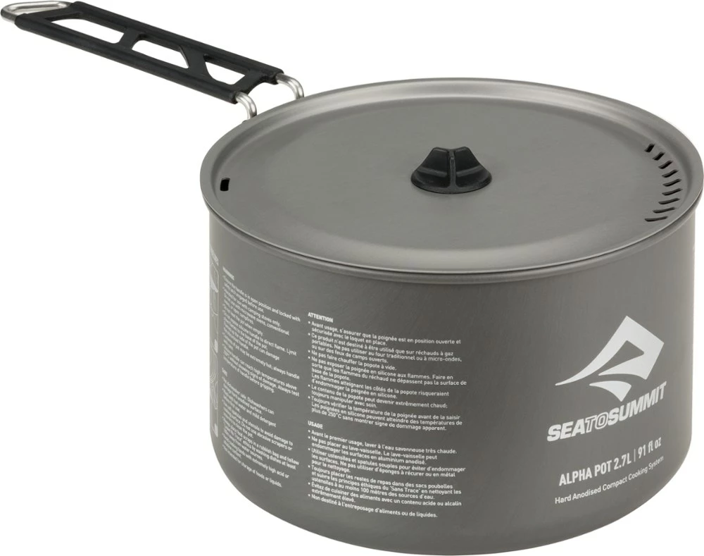 Textured on the base to deliver optimal stability on backpacking stoves, the Sea to Summit Alpha Pot 2.7 L makes the necessary cowboy coffee, or a big, comforting bowl of backcountry mac and cheese.