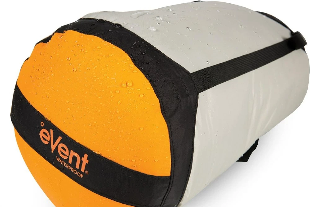 This valve-free compression dry sack uses a breathable base made of eVent™ waterproof fabric that allows air to be pushed out, but keeps water from entering.